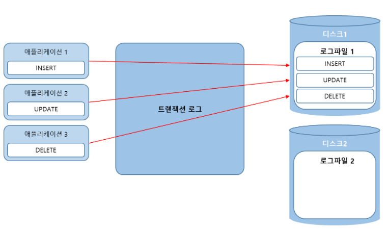 - 트랜잭션 로그는 실행된 순서대로 로그 파일에 기록된다.