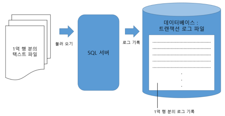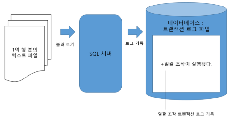 - 데이터가 큰 파일을 저장할 경우 미리 쓰기 로그를 실행하면 대량의 트랜잭션 로그 기록이 발생한다.