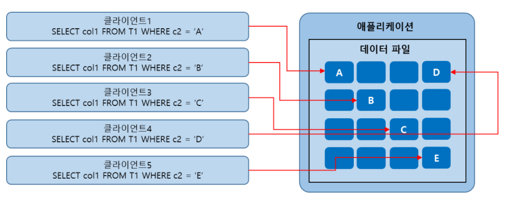 - 데이터 파일에 저장된 데이터가 파일 내의 다양한 장소에 저장해 있을 가능성이 높다.