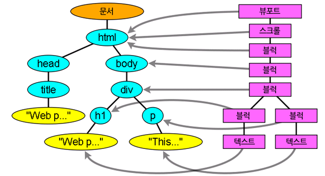 - 웹킷은 이 구성 요소를 렌더러(renderer: 인도자, 주는 사람, 양도하는 사람) 또는 렌더 객체( render object )라는