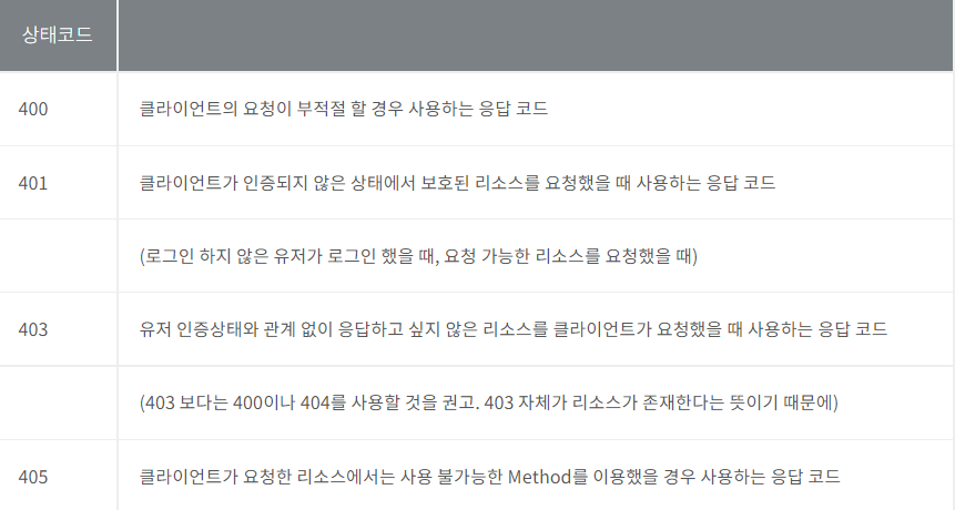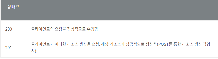 합니다. 정확한 응답 상태만드로 많은 정보를 전달 할 수 있기에 응답의 상태코드 값을 명확히 돌려주는 것은