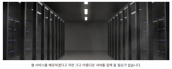 - 예를 들면 웹 서비스 하나를 배포하려고 하면 서버를 구입하고 네트워크를 설정하고 운영 체제를 설치하는 등